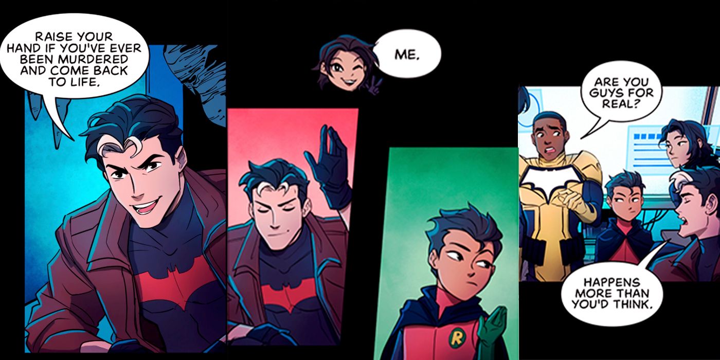 Superheroes have become notorious for not staying dead very long, so much so that even the Bat-Family is admitting that death doesn't really matter in comics. In the Webtoon Batman: Wayne Family Adventures Ep. 7, Batman's team of vigilantes discuss amongst themselves how many of them have died and come back to life... and their nonchalance regarding the matter speaks volumes.